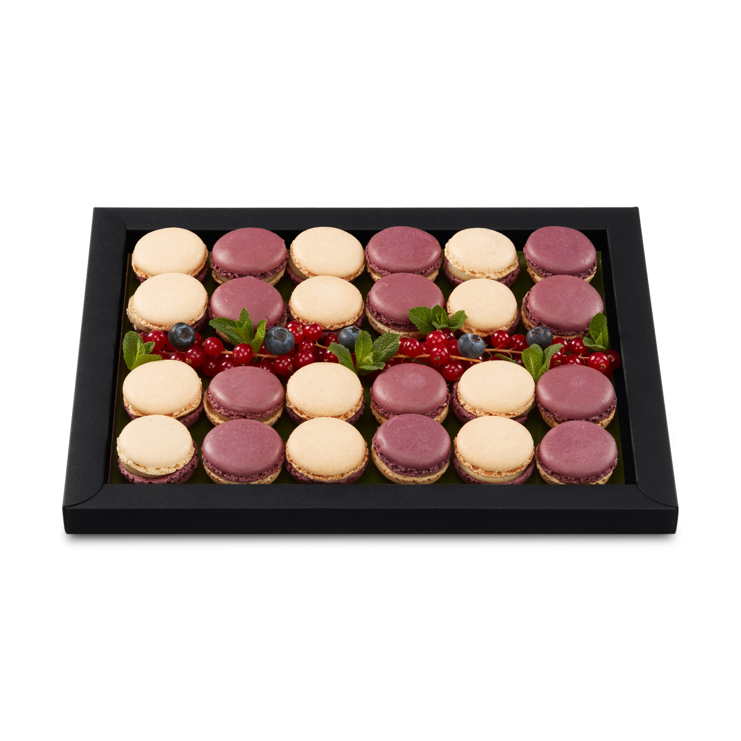 | Menge | 24 Macarons Vanille-Heidelbeer |