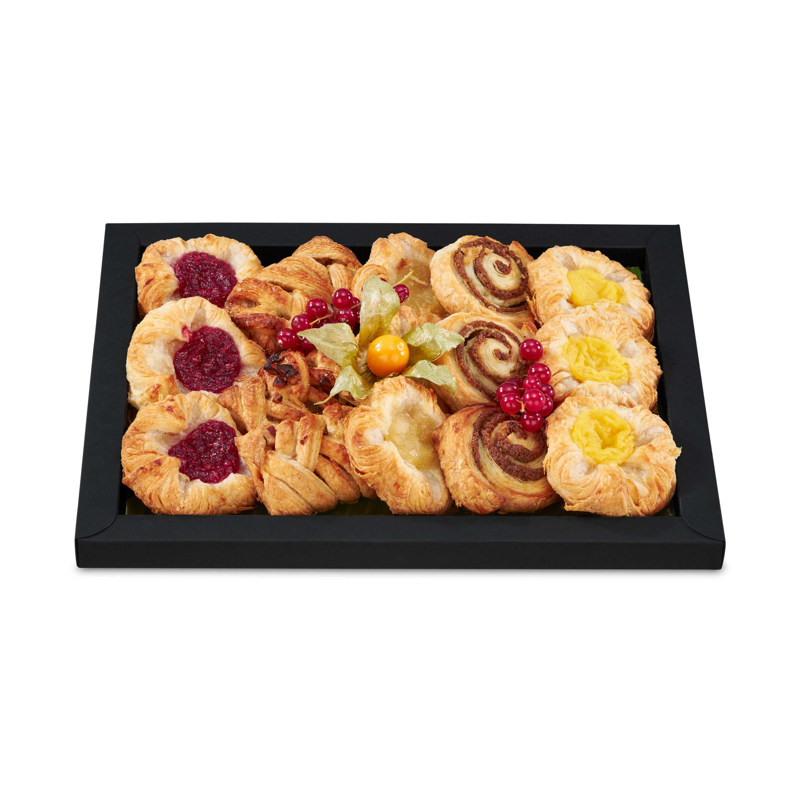 Himbeerplunder, Vanilleplunder, Apfelplunder, Pekannusstasche und Zimtschnecke
